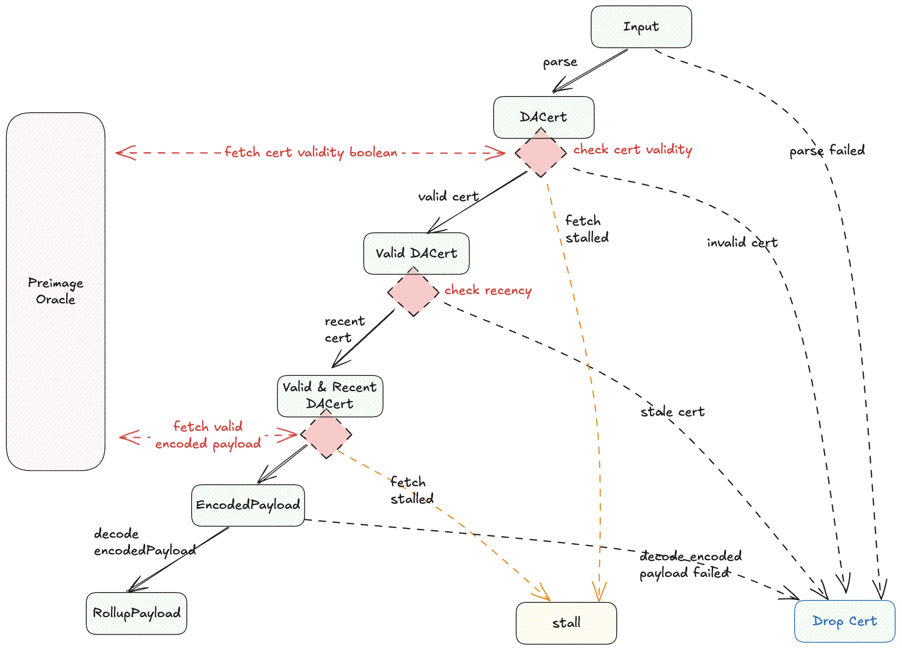 - deterministically deriving a rollup payload from an EigenDA certificate